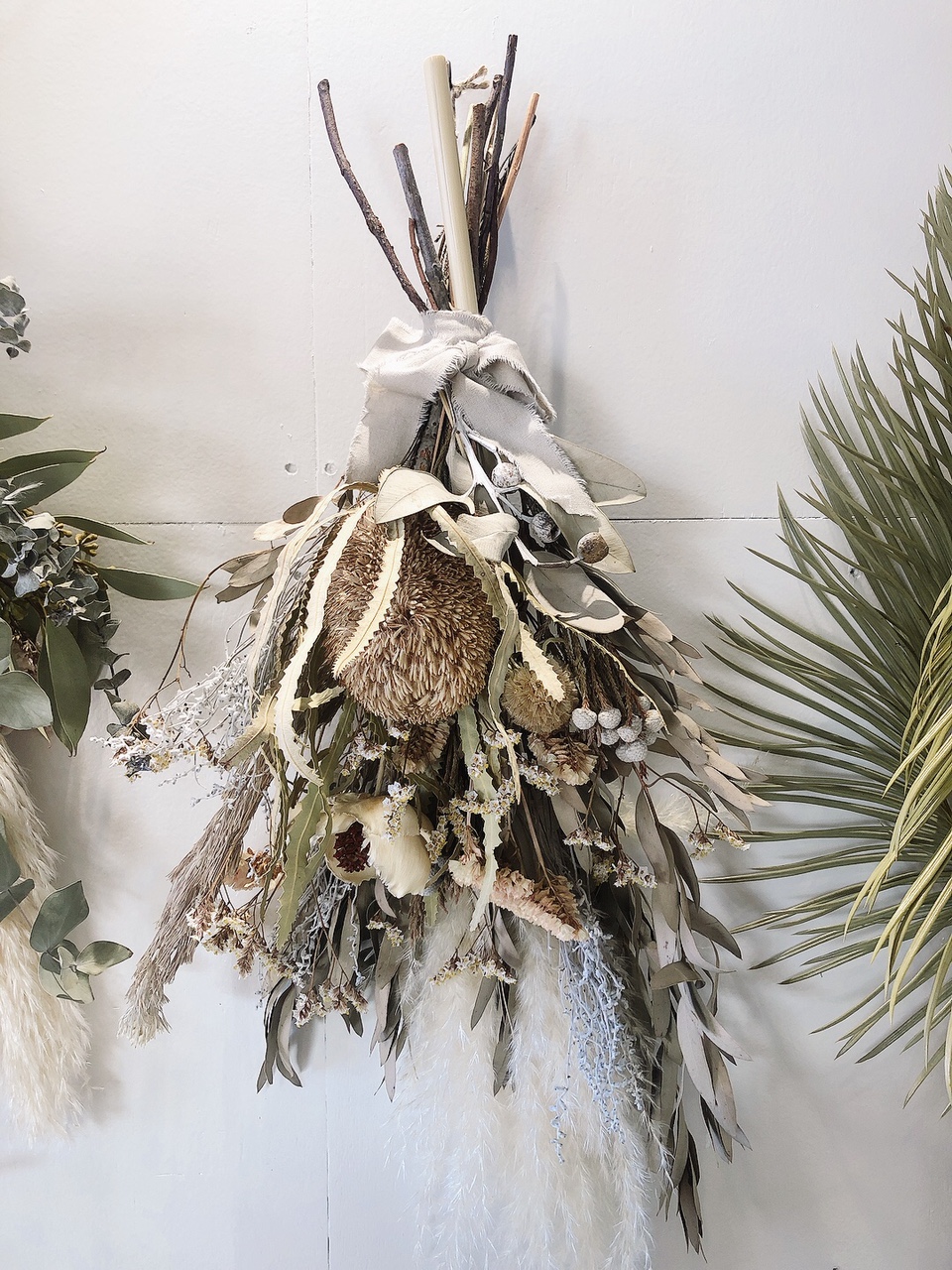 そのまま飾れて長く綺麗に楽しめるドライフラワー。独特なビンテージ感漂う柔らかく優しい雰囲気がとてもおしゃれなので飾る場所や時季にあわせてインテリアを楽しんで頂けます。